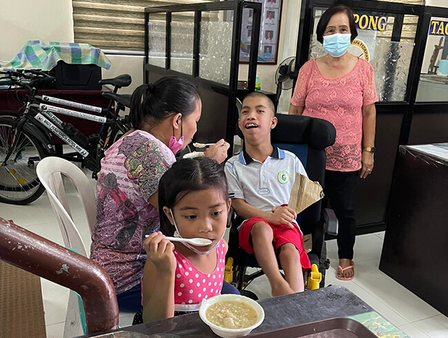 Inclusive Integrated Feeding Program for children with severe malnutrition, wasting and stunting and those with disabilities such as Down Syndrome and Cerebral Palsy. The feeding program is done daily with weekly play activities for the children, meeting with parents and physical therapy and special education support for children with intellectual and behavior problems.